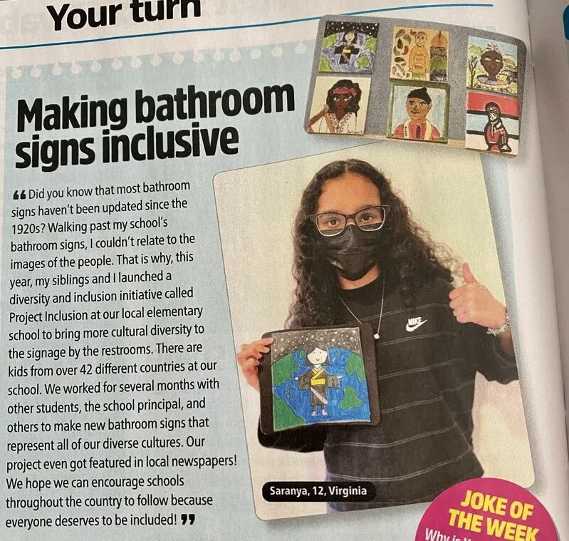 We started our project at our local elementary school. This is because we feel kids voices and ideas should be heard. Creating inviting bathroom signs can be a small act to help students feel like they belong. This project started for students by students.